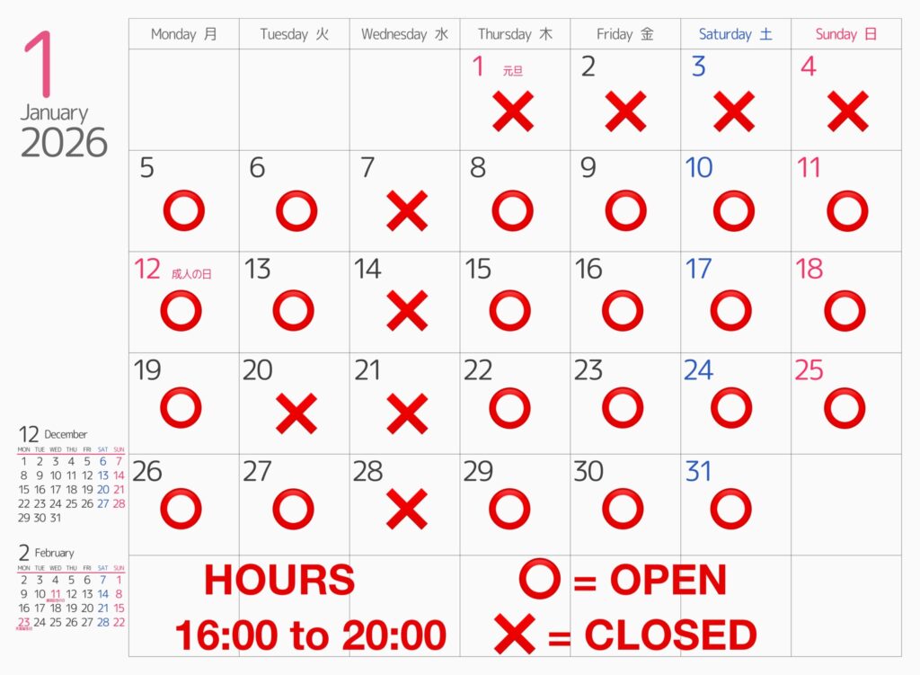 [ 火 ] 16:00~20:00 (休業の週がございます)