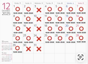 12月の営業日のご案内です