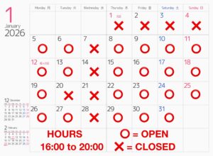 1月の営業日のご案内です